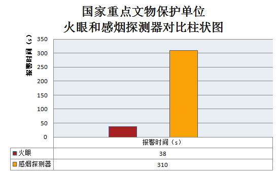 從2013年底至2015年初,“火眼”技術(shù)應(yīng)用于北京萬壽寺、白塔寺、孔廟和國子監(jiān)等文博單位。試驗期間共進行火焰測試128次,報警時間5~56秒,平均時間23秒。煙霧測試83次,報警時間14~41秒,平均時間27秒。 “火眼”技術(shù)和感煙探測器對比試驗3次: “火眼”軟件平均報警時間:38秒; 感煙探測器報警時間:310秒。