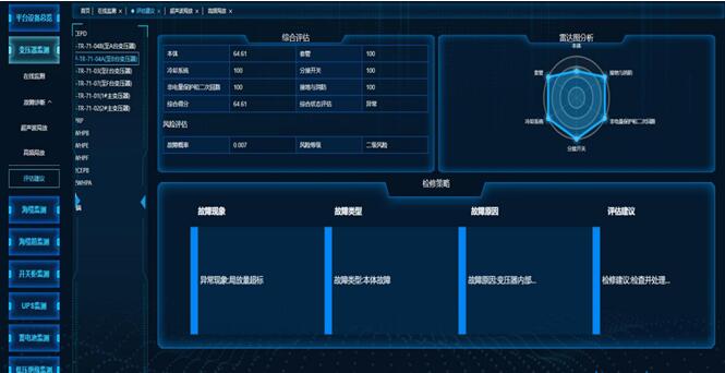 EOMS設(shè)備健康監(jiān)測(cè)系統(tǒng)能夠?qū)﹄姎庠O(shè)備維保記錄、運(yùn)行數(shù)據(jù)、電氣日常管理方面的數(shù)據(jù)進(jìn)行收集、分析、篩選。通過收集現(xiàn)有系統(tǒng)中電氣設(shè)備運(yùn)行數(shù)據(jù)、設(shè)備維保記錄、在線監(jiān)測(cè)系統(tǒng)記錄、工作記錄、檢查記錄、設(shè)備問題或隱患等,并將所有信息與設(shè)備和平臺(tái)進(jìn)行關(guān)聯(lián),生成工作人員需要的報(bào)表內(nèi)容,并從電氣設(shè)備管理、數(shù)據(jù)標(biāo)準(zhǔn)化服務(wù)、報(bào)表數(shù)據(jù)分析等方面提升電氣設(shè)備標(biāo)準(zhǔn)化、智能化管理,具備數(shù)據(jù)分析和輔助決策能力。可視化方式全面展示各平臺(tái)的設(shè)備實(shí)時(shí)健康評(píng)估狀態(tài),便于全面掌握準(zhǔn)確的設(shè)備狀態(tài)進(jìn)行預(yù)測(cè)和總體分析。
