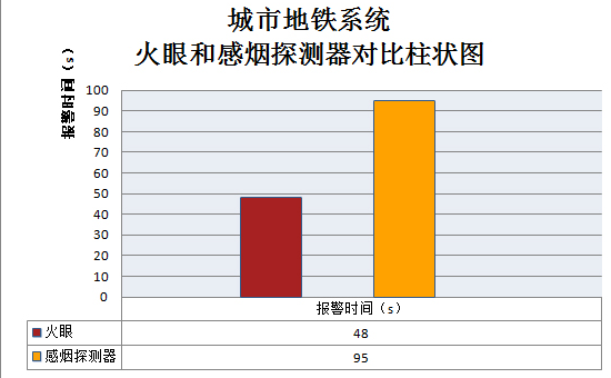 “火眼”技術(shù)于2014年成功試點安裝于上海地鐵十三號線大渡河站,隨后數(shù)月覆蓋安裝于南京西路站、淮海中路站、自然博物館站等。“火眼”技術(shù)于地鐵系統(tǒng)共做火焰測試9次,報警時間:20~53秒,平均時間:38秒;煙霧測試9次,報警時間:20~60秒,平均時間46秒。 “火眼”技術(shù)和車站感煙探測器對比試驗6次: “火眼”軟件平均報警時間:48秒; 感煙探測器報警時間:95秒。
